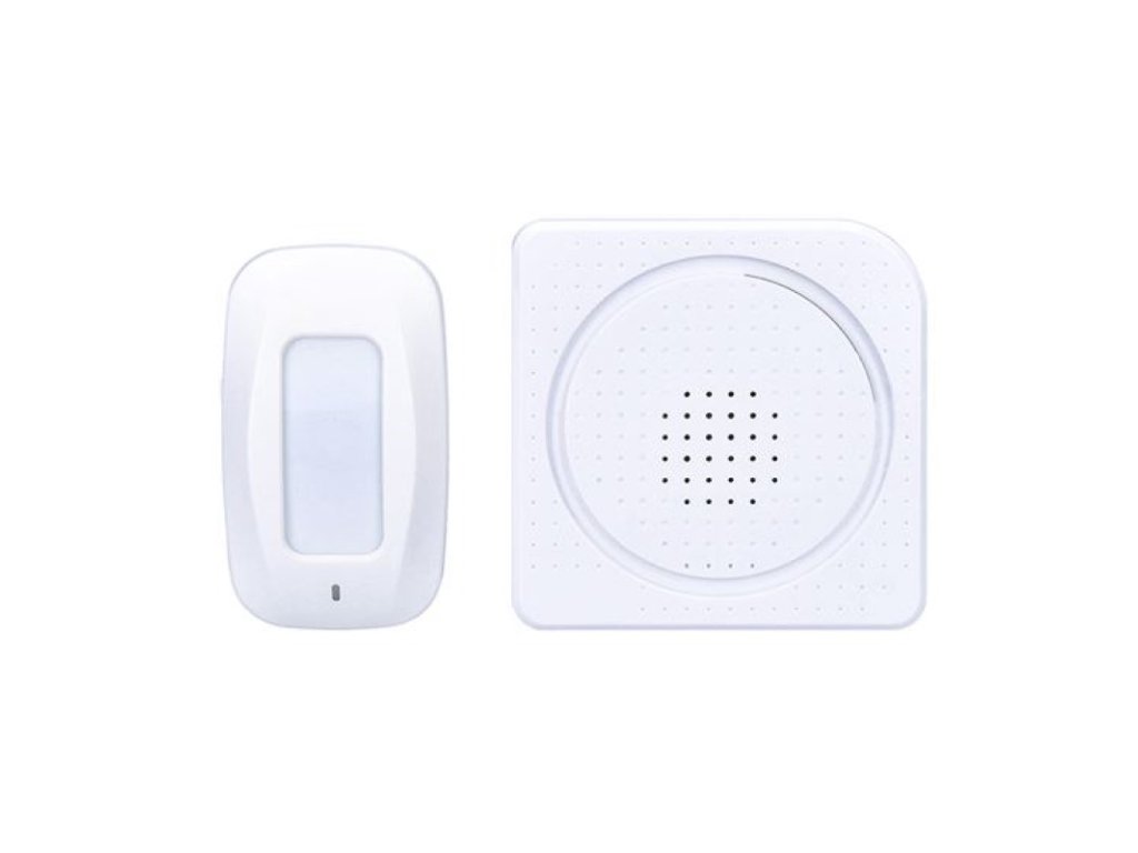 Hlásič pohybu/gong s bezdrátovým senzorem - PIR čidlo automatický režim: vyšle signál při detekci pohybu. Úhel záběru: 15° vertikálně, 100° horizontálně. 3D otočný stojánek senzoru, montážní otvory na stěnu. Vhodný pro obchody, firmy, kanceláře.