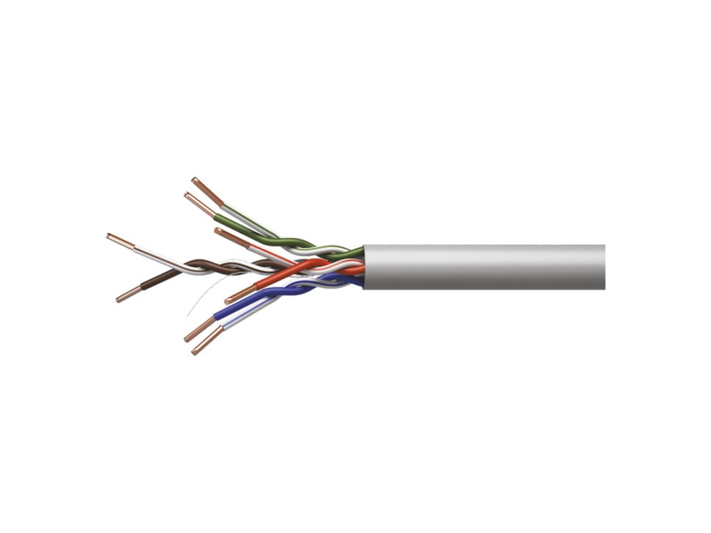 Nestíněný horizontální kabel nejvyšší kvality kategorie CAT5E s PVC pláštěm. Jádra vodičů vyrobeny z nerecyklované mědi. Kabel splňuje požadavky směrnice CPR o stavebních výrobcích.