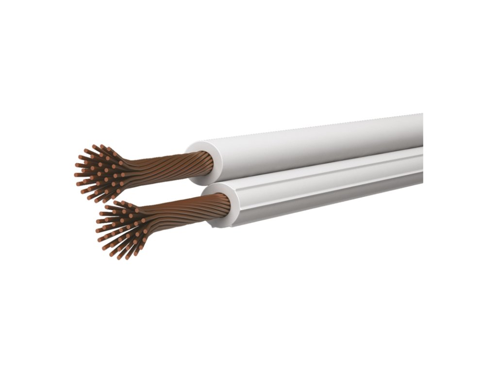 Nestíněná dvojlinka (vodič) s průřezem 2 × 0,75 mm2. Dvojlinka má bílou barvu a plášť z PVC.