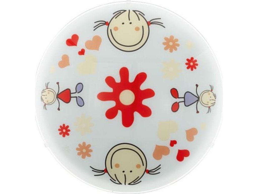 Dětské stropní svítidlo v moderním provedení s dětským motivem je vhodné jako centrální nebo doplňkové osvětlení v dětském interiéru. Dětskou stropnici lze montovat na svislou zeď nebo strop. Stínidlo je v provedení ze skla s ručně malovaným dětským motivem, které skvěle rozptyluje světlo. Sklo svítidla je uchyceno třemi plastovými úchyty. Stropnice je vyrobena v klasickém kulatém tvaru. Doporučené žárovky pro dětské stropní svítidlo jsou žárovky 2x60W s paticí E27, lze je nahradit úspornými nebo LED žárovkami. Světelný zdroj není součástí balení.