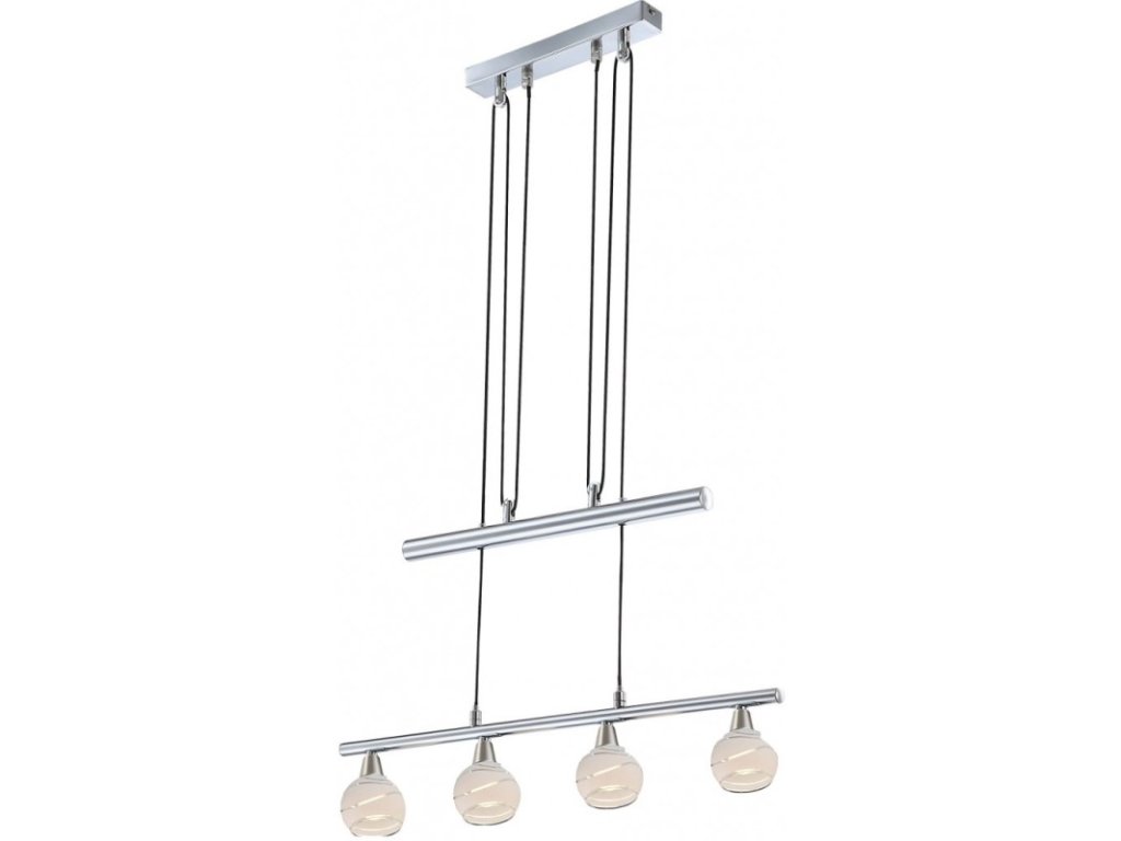 Moderní zágvěsný lustr je kvalitní a designové svítidlo. Svítidlo je vhodné nad jídelní stůl, ale použití se meze nekladou. Materiál svítidla je kov v barvě nikl a skleněná stínidla s motivem. Světelným zdrojem svítidla jsou LED úsporné žárovky E14 s příkonem 4 x 5W, svítivosti 4 x 400lm a teplotou barvy 3000K, což je klasické příjemné teplé světlo.