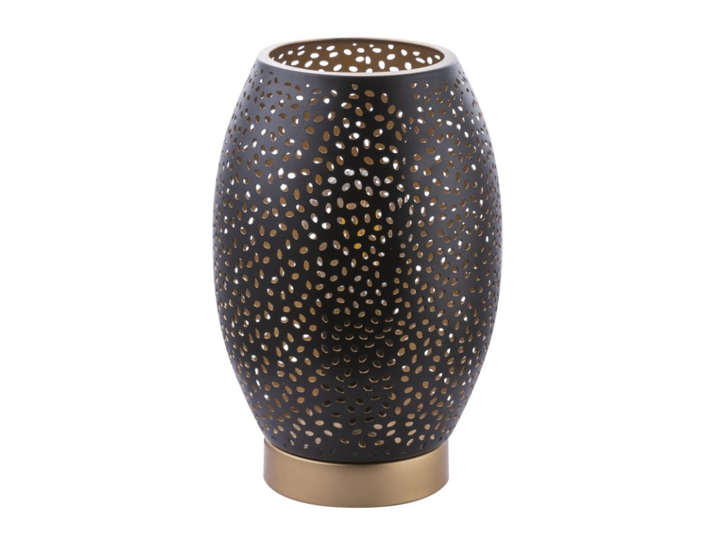 Stolní svítidlo, kov zlatý, kov černý, matný zlatý, kabel 1,5m, stínítko s dekorativním děrováním, vypínač, bez žárovky