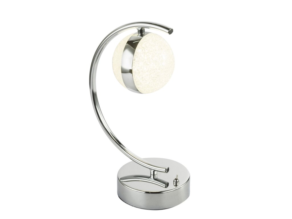 Stolová lampa, kov, chrom, akryl průhledný, akrylové křišťály průhledné, kabel 1,5 m, vypínač, včetně 1xLED 10W 230V, 950lm, 4000K.