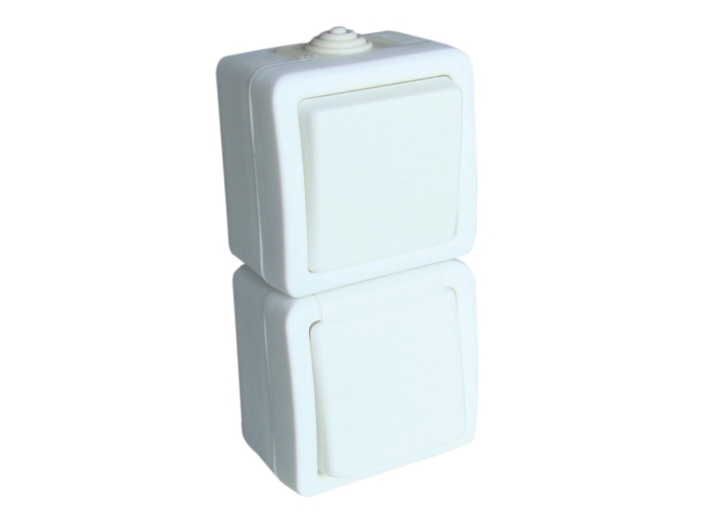 Kombinace zásuvka, vypínač nástěnná svislá IP44 bílá TRACON ELECTRIC