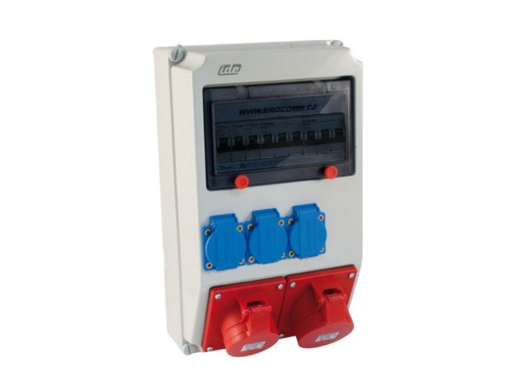 Zásuvky: 3x 230V/16A + 400V/16A/5P + 400V/32A/5P
