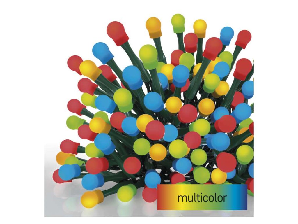 LED vánoční cherry řetěz – kuličky multicolor, časovač 8m IP44