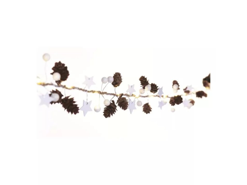 LED vánoční girlanda - šišky teplá bílá 1,7m, 2xAA IP20