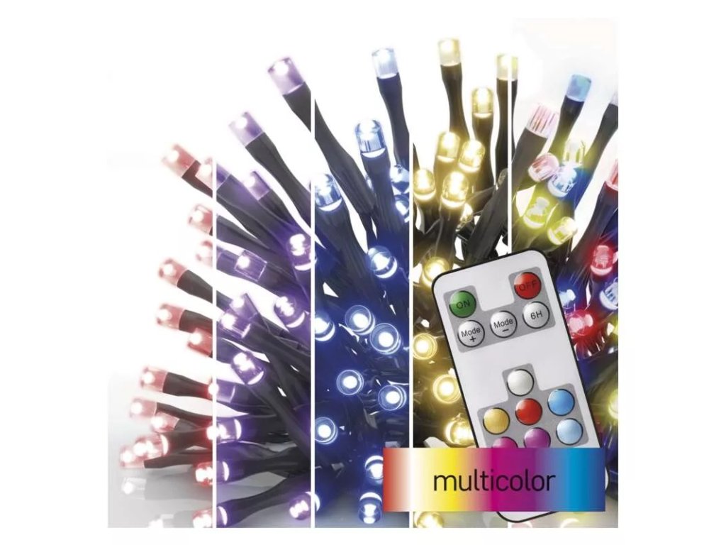LED vánoční řetěz RGB, ovladač, časovač 16m IP44