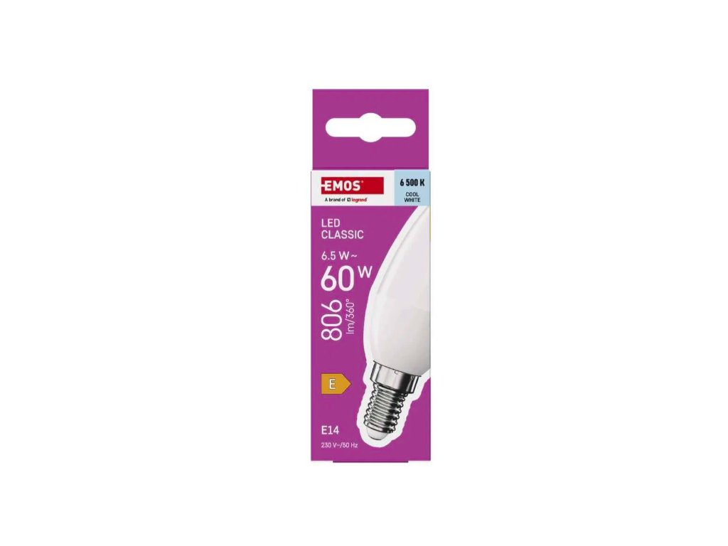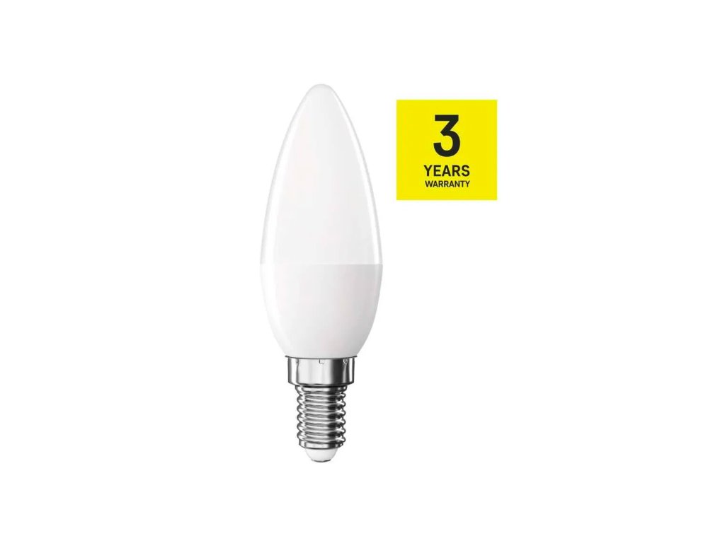 LED žárovka EMOS ZQ3E44 má tvar svíčky. Na jejím konci najdete úzkou paticí E14, která nejčastěji pasuje do nástěnných světel, lustrů a lampiček.