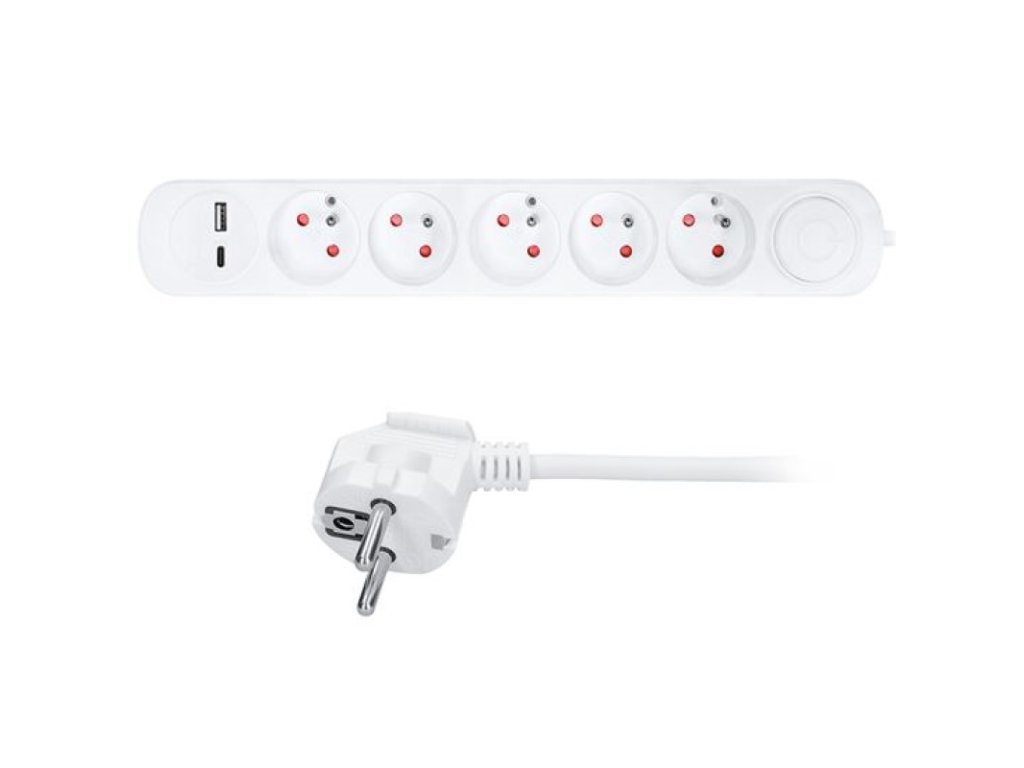 Počet zásuvek: 5x 2P+PE + USB A + USB C