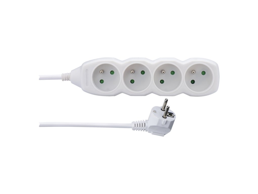 Bílý prodlužovací přívod, 4 zásuvka s délkou 1,5 m a průřezem vodiče 1 mm2. Vhodný pro maximální zátěž 10 A max. Prodlužovací přívod 1,5 m na 230 V~ slouží k prodloužení elektrické energie tam, kam pevná zásuvka nedosáhne.