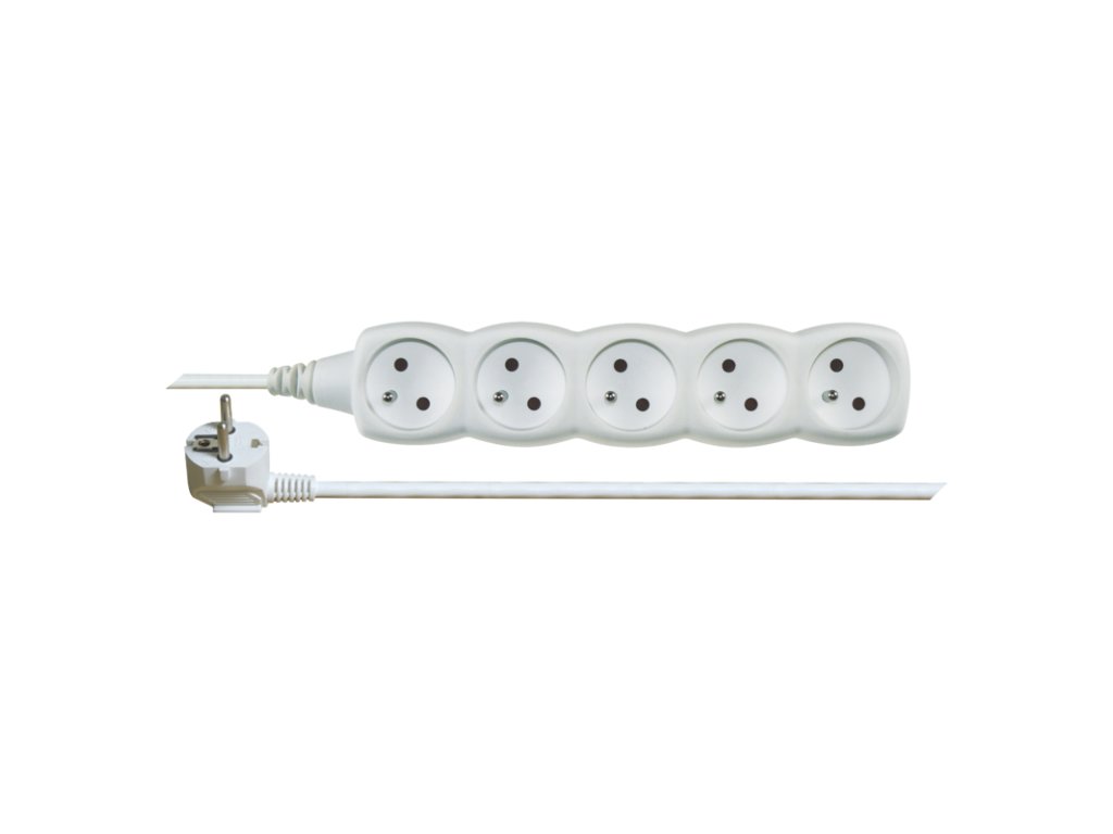 Bílý prodlužovací přívod, 5 zásuvka s délkou 3 m a průřezem vodiče 1 mm2. Vhodný pro maximální zátěž 10 A max. Prodlužovací přívod 3 m na 230 V~ slouží k prodloužení elektrické energie tam, kam pevná zásuvka nedosáhne.