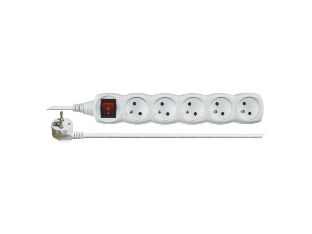 Bílý prodlužovací přívod, 5 zásuvka s vypínačem, délkou 2 m a průřezem vodiče 1 mm2. Vhodný pro maximální zátěž 10 A max. Prodlužovací přívod 2 m na 230 V~ slouží k prodloužení elektrické energie tam, kam pevná zásuvka nedosáhne.