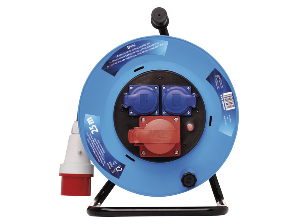 Prodlužovací kabel P193250 3 zásuvky (400V+2x230V) 25m buben 5x1,5mm černý