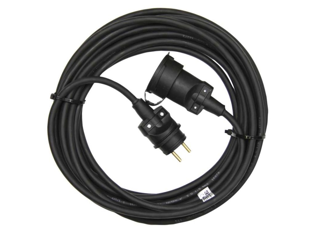 Gumový prodlužovací přívod 15 m na 250 V~ slouží k prodloužení elektrické energie tam, kam pevná zásuvka nedosáhne. Pryžový kabel je určen pro střední mechanické namáhání. Krytí IP65.