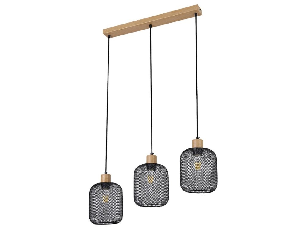Závěsné svítidlo Grendel se 3 žárovkami má podlouhlou základnu v barvě buku a je textilními šňůrami spojena s kovovými matně černými stínidly. Toto svítidlo lze použít se třemi žárovkami, každá o výkonu až 60W. Typ patice je E27. V závislosti na místnosti, kde budete toto závěsné svítidlo instalovat, můžete teplotu zdroje světla.