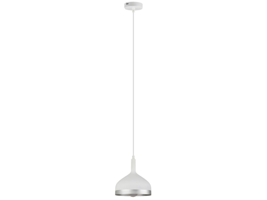 Závěsné svítidlo s 1 paticí. Matné bílé kovové svítidlo se stříbrně lemovaným stínidlem. Svítidlo lze použít s energeticky úsporným světelným zdrojem i o výkonu až 60W, patice typu E27.