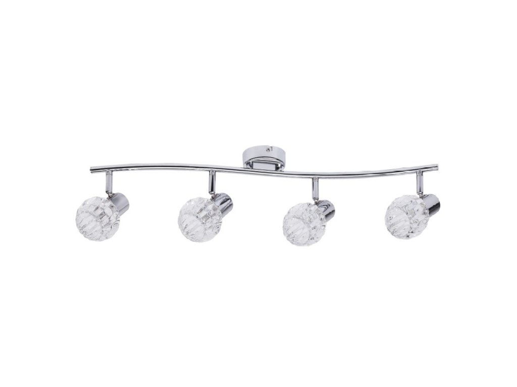 Stropní bodové svítidlo v moderním stylu se 4 objímkami. Chromované svítidlo vyrobené z kovu a polohovatelných skleněných stínidel s krytím IP20. Svítidlo lze také použít se 4 x úspornými světelnými zdroji do 40W, s paticemi E14.