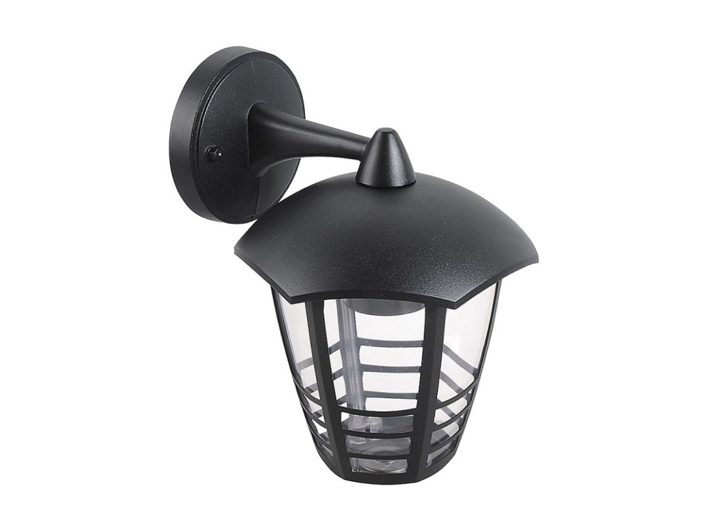 Venkovní nástěnné svítidlo klasického vzhledu, 1 objímka a UV odolný design. Černé kovové svítidlo s vodotěsným stínidlem a ochranou IP44 proti stříkající vodě a prachu. Svítidlo lze použít se světelným zdrojem s výkonem až 60W, patice typu E27.