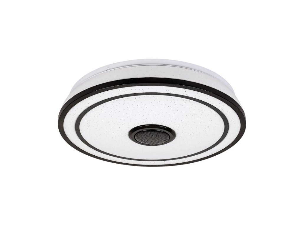 Kulaté stropní svítidlo Nikolaus s hvězdným efektem je chytré svítidlo, které splní všechny vaše potřeby a hodí se do každého moderního obývacího pokoje nebo ložnice. Tento černý kovový model je doplněn bílým plastovým stínidlem a má vestavěný LED světelný zdroj s výkonem 24W, světelným tokem 1 600 lumenů se stínidlem a 2 400 lumenů bez stínítka a mimořádná životnost 50 000 hodin! Barevnou teplotu svítidla lze nastavit v rozmezí. Mezi další extra funkce patří nastavitelný jas, RGB osvětlení, paměť, časovač a funkce nočního osvětlení. A to není vše: Nikolaus má také reproduktor, který lze ovládat přes Bluetooth! Funkci paměti lze nastavit pomocí spínače nebo dálkového ovladače, zatímco ostatní doplňkové funkce lze ovládat pomocí dálkového ovladače.