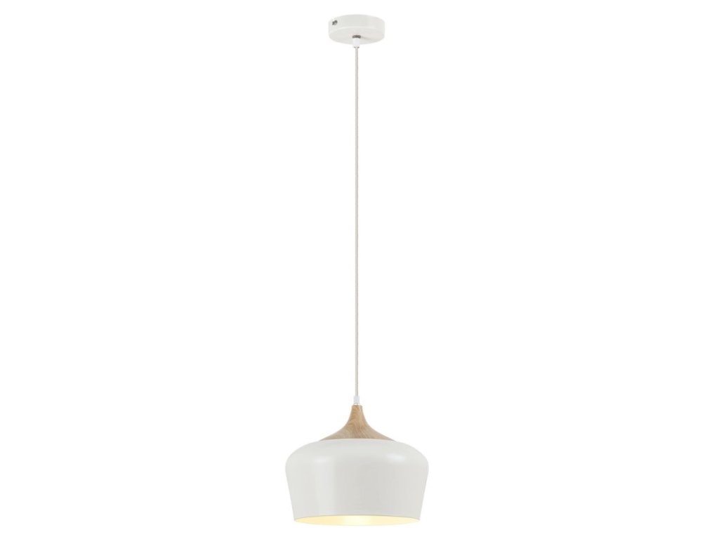 Závěsné svítidlo v severském stylu s 1 paticí. Bílá kovová konstrukce a stínidlo v bílé a bukové barvě. Svítidlo lze použít jak s energeticky úsporným světelným zdrojem, tak s výkonem až 60W, patice typu E27.