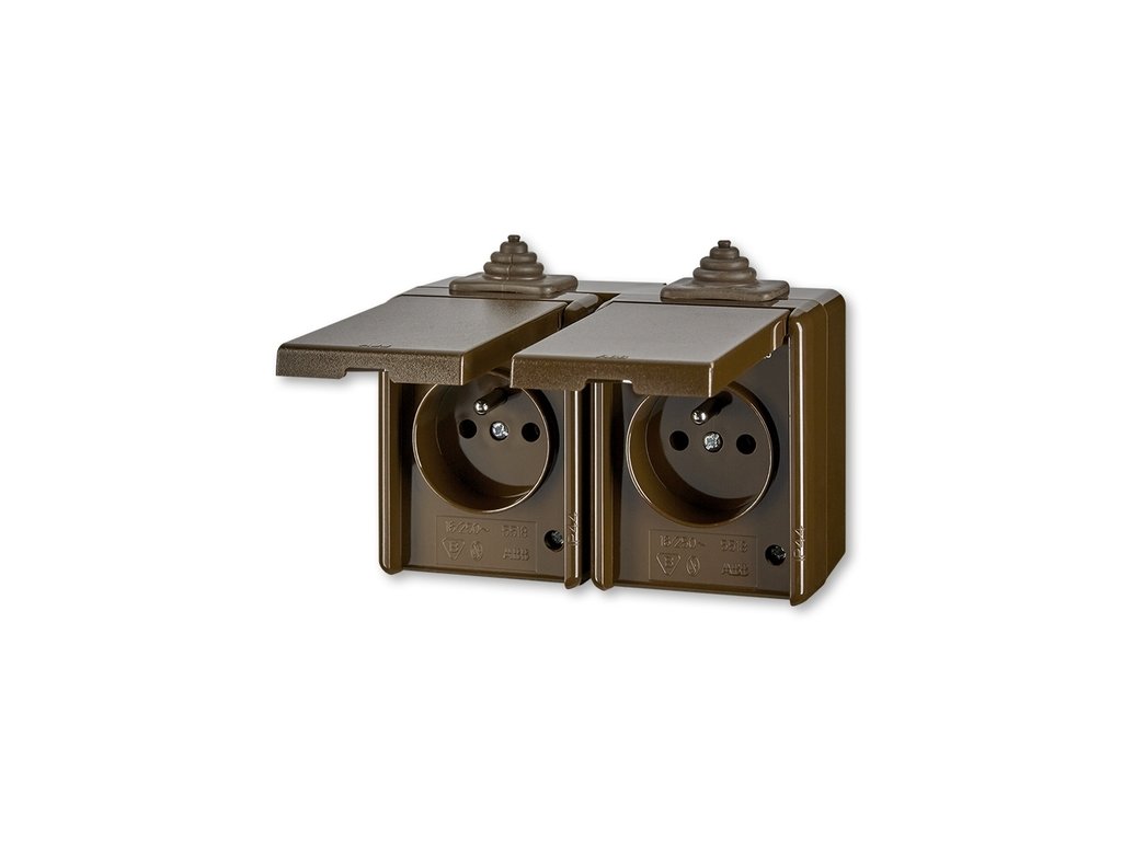 Zásuvka 2-násobná 2 přívody s víčkem hnědá PRAKTIK IP44