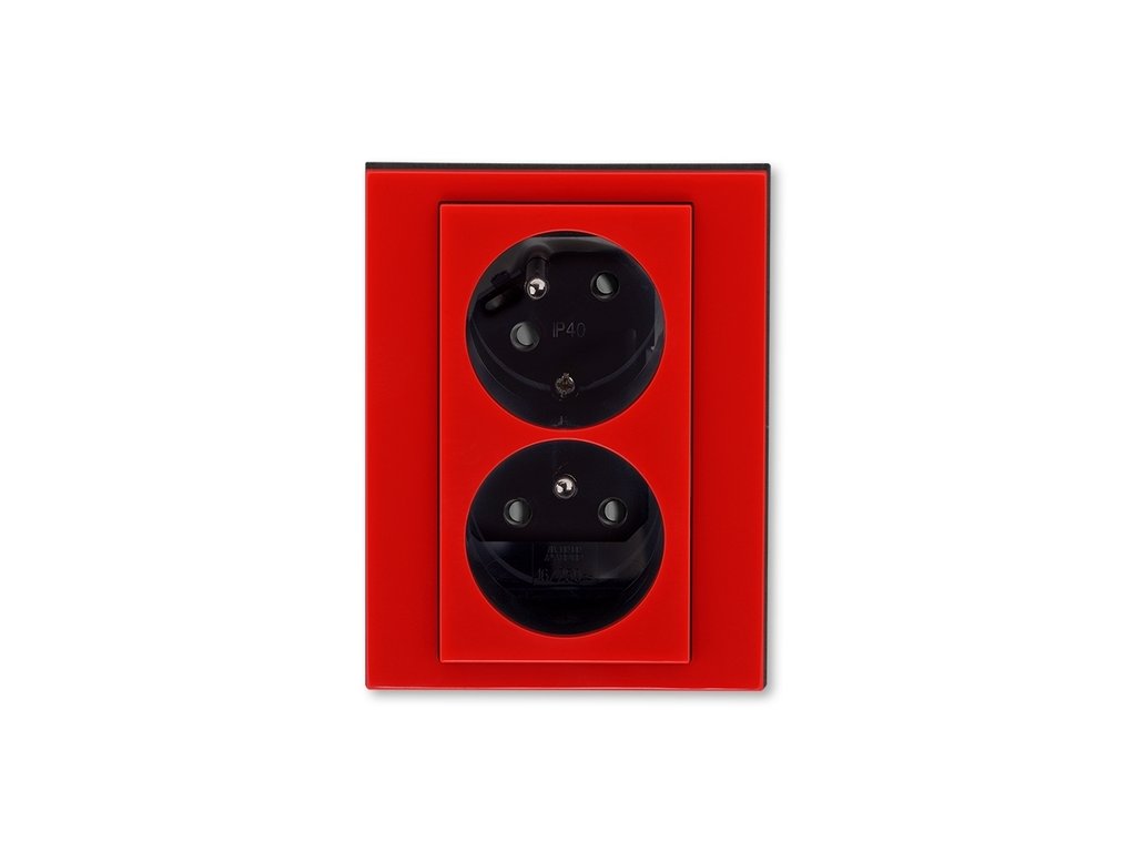 Zásuvka 2-násobná bezšroubová šikmá červená/kouřová černá LEVIT