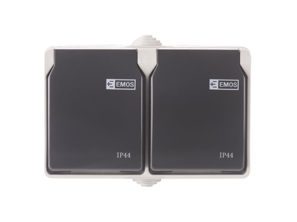 Zásuvka 2-násobná nástěnná IP44 šedá EMOS