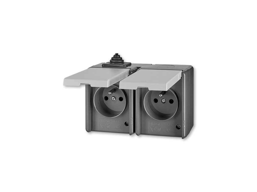 Zásuvka 2-násobná s víčkem šedá PRAKTIK IP44