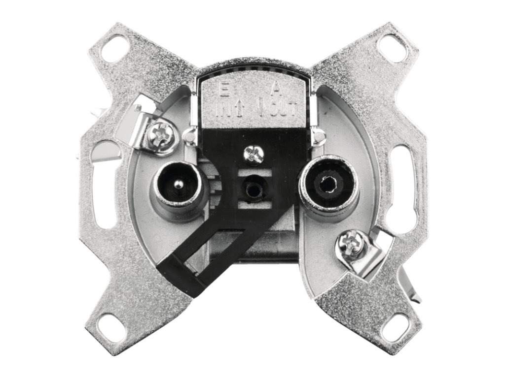 Účastnická zásuvka EU 3601 koncová s útlumem 1 dB a zdířkami pro TV + Rádio. Účastnická zásuvka propojuje např. anténu s televizí, satelitem nebo set-top-boxem. Zásuvka není průchozí pro stejnosměrné napětí.