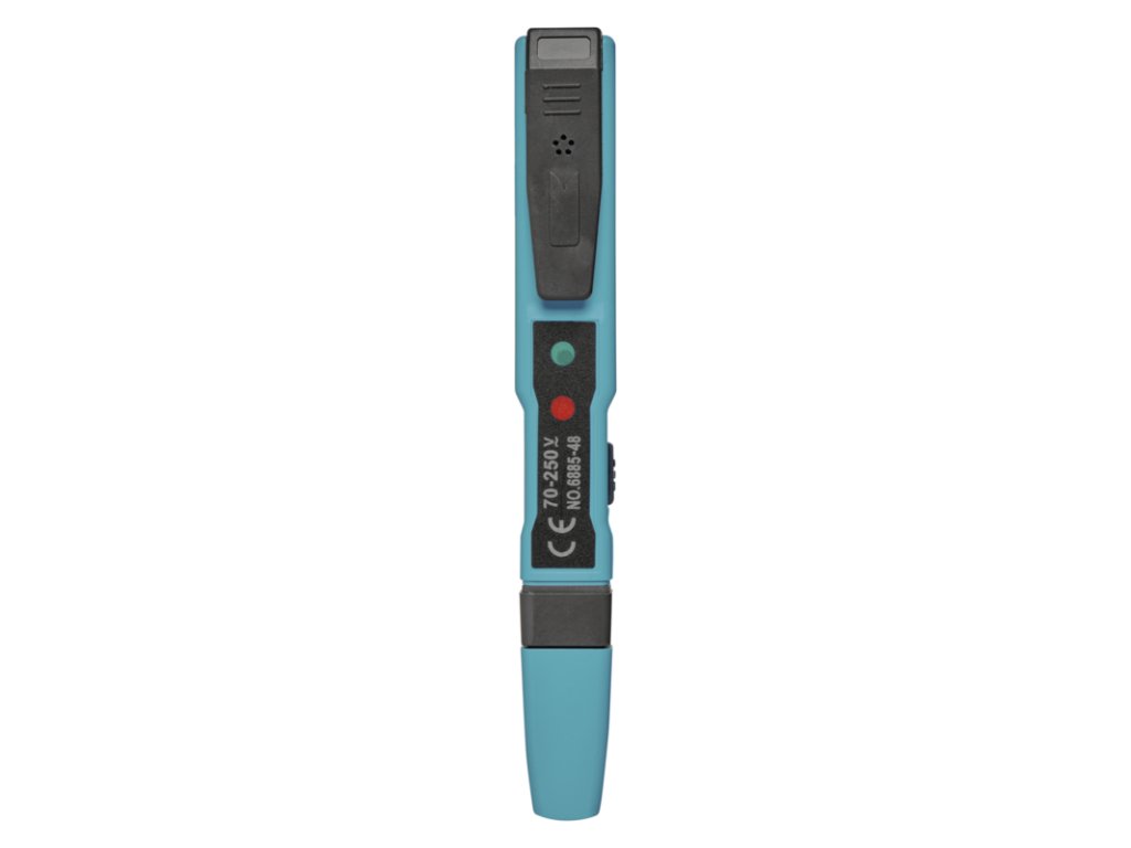 Zkoušečka napětí s optickou signalizací. Zkoušečka je určena ke zjišťování střídavého napětí 70–250 V a stejnosměrného napětí 0–250 V. Zkoušečka zjišťuje také polaritu zdrojů nebo zkrat. Zkoušečka napětí je napájena 2× LR44 (součást balení).